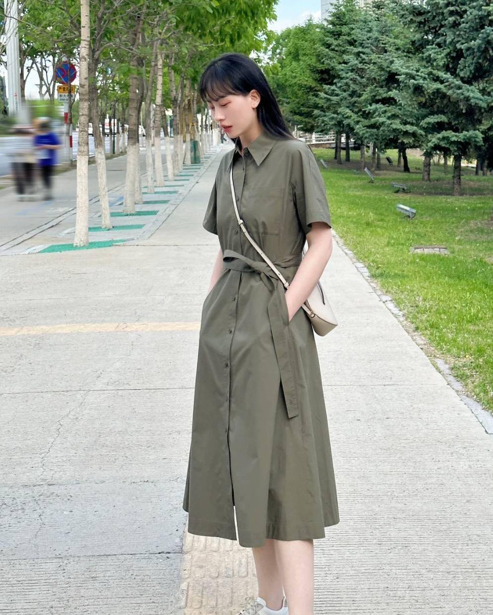 想要穿出更好的整體效果,連衣裙一定不能錯過,但是連衣裙的款式非常多樣,需要學會有目的地去選擇,可以選擇收腰的襯衫裙,比較寬大,時尚,版型遮肉又酷。