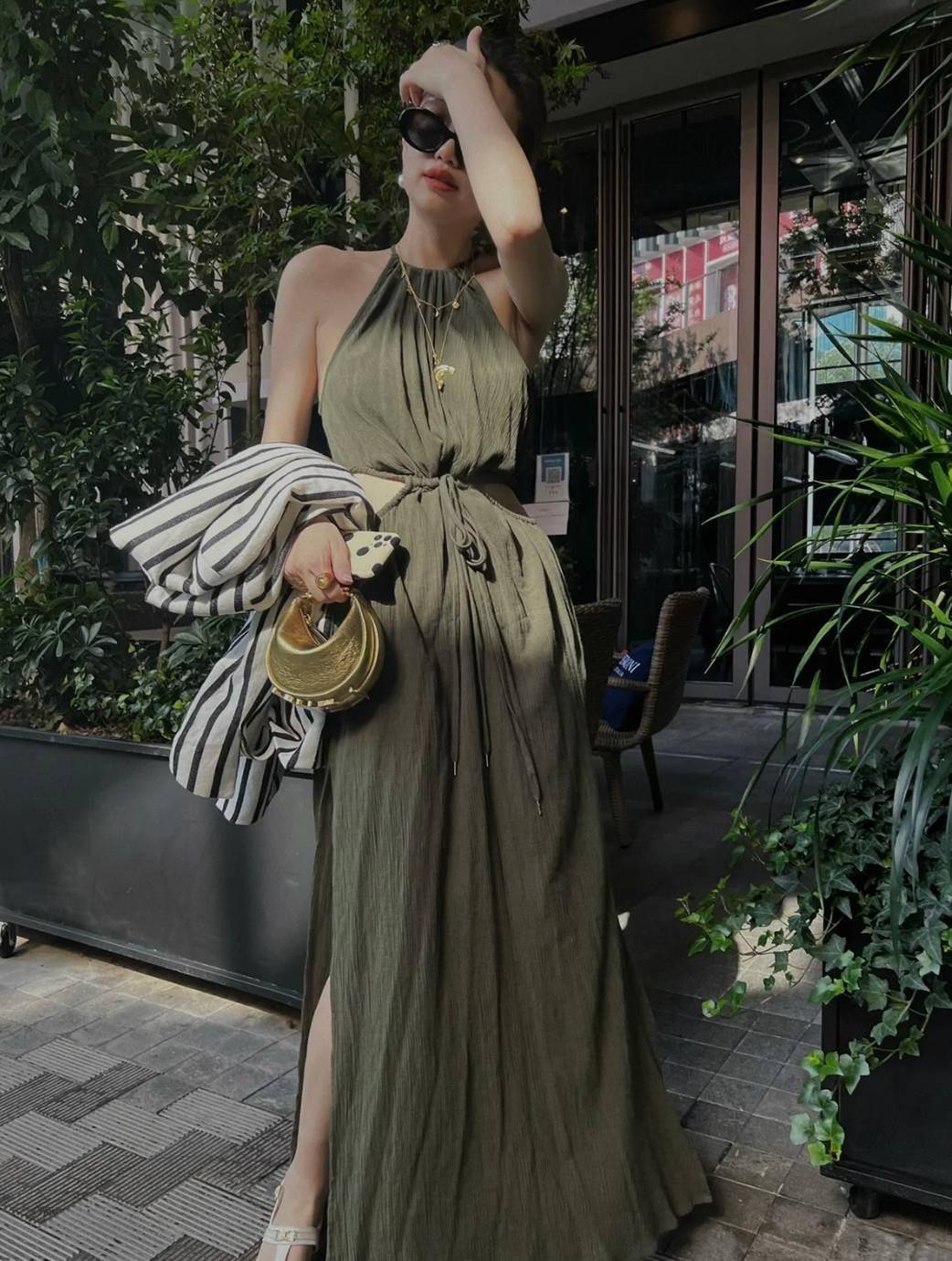 在長裙中使用韭菜綠會讓人感覺特別棒。很多人覺得這條裙子非常優雅精致,但與韭菜綠搭配時,就會與非常精致的造型產生沖突。個性化效果。