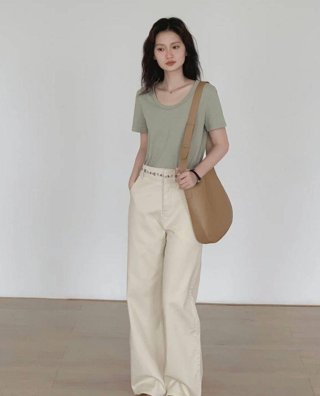 相比牛仔闊腿褲,這些簡約風格的韭菜綠工裝褲穿在身上顯得更加慵懶隨意,尤其是闊腿版型,對下半身的包容性非常好,能夠打造出不錯的垂墜效果。