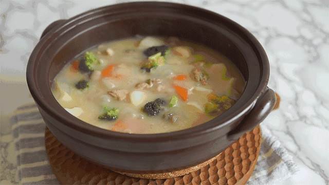 而是:把肉煮2~3小時後在湯里加上蘿蔔或海帶,然後再燉1小時才食用,他們把這種菜叫「營養寶庫」。