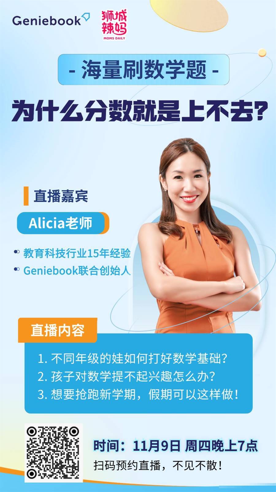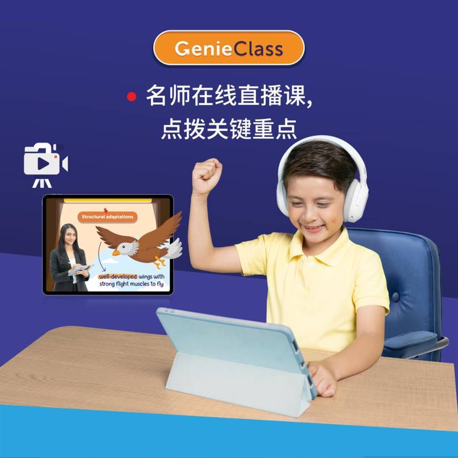 除了練習和答疑,Geniebook每天都會有一堂相應科目的直播課(GenieClass),每周會有100多個在線直播課程強化關鍵科目概念。直播課的內容可以反復重播,直到聽懂為止。
