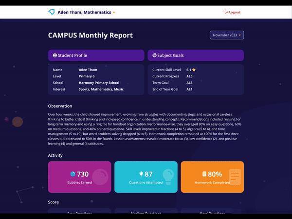 Geniebook CAMPUS每月都會向家長提供詳細的學習分析報告,孩子的優勢、弱點一目了然,老師的觀察結果也是清清楚楚,家長可以隨時了解孩子的學習情況,老師可以即時改進教學方式。