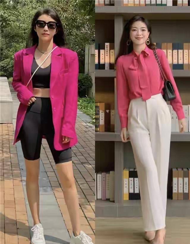 艷俗的色彩不適宜大面積的穿搭,而且對于中年女性來說,更容易顯出大媽感。玫紅色就是這樣一種容易拉低檔次的艷俗色彩。