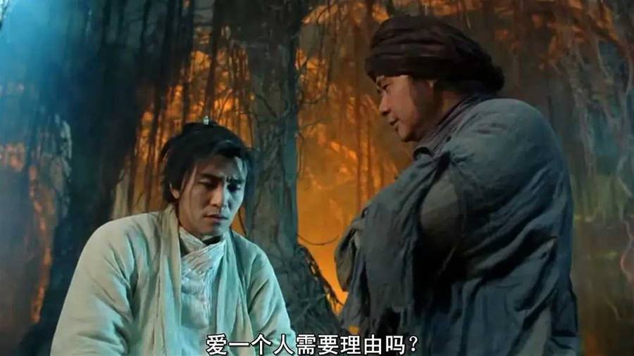 在相互接觸的過程中,至尊寶也莫名的愛上了紫霞,雖然這份感情升華的很突然,但愛上一個人確實不需要理由,雖然他自己不想承認這個事實,然而潛意識卻不會騙他,直到至尊寶被剖出了心臟,看到了紫霞在自己心中留下的那一滴淚,他才徹底的明白。