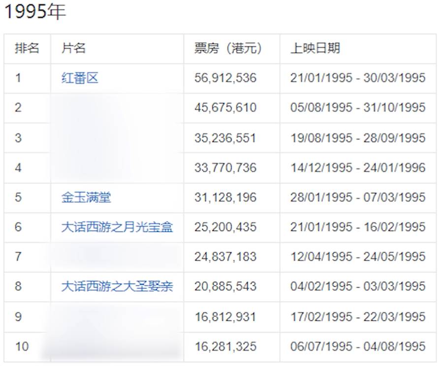 直到1993年暑期檔,整個香港影壇從開埠以來,只有七部作品的票房超過了4000萬港幣,而這七部全都是周星馳出演的,可見那幾年他在香港電影市場,真的是所向披靡。