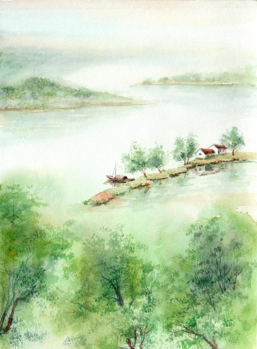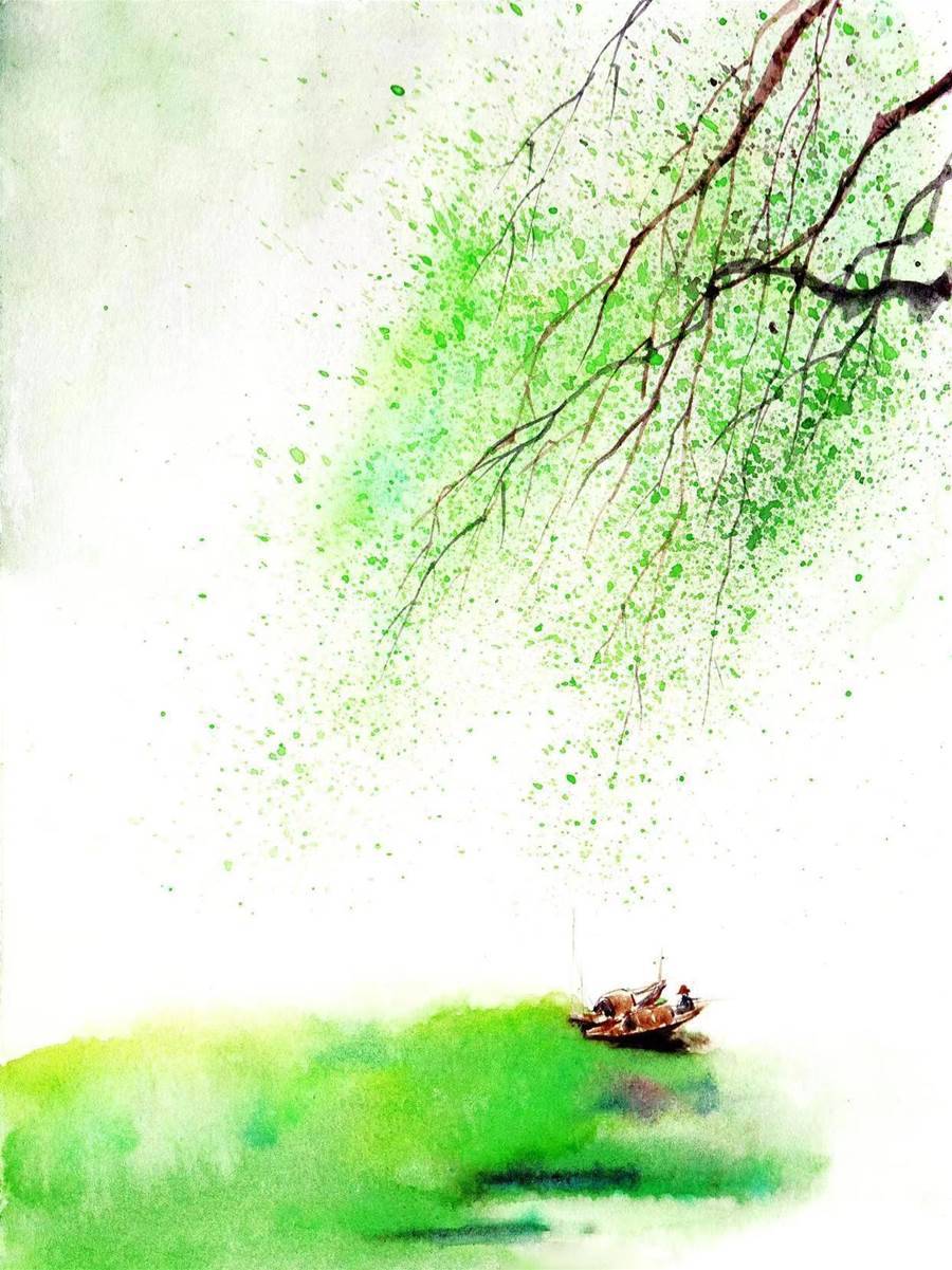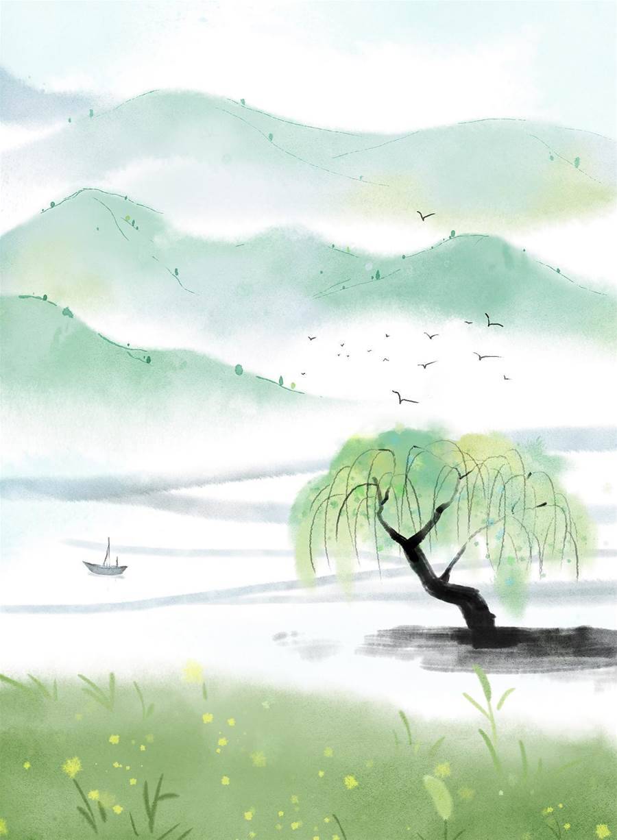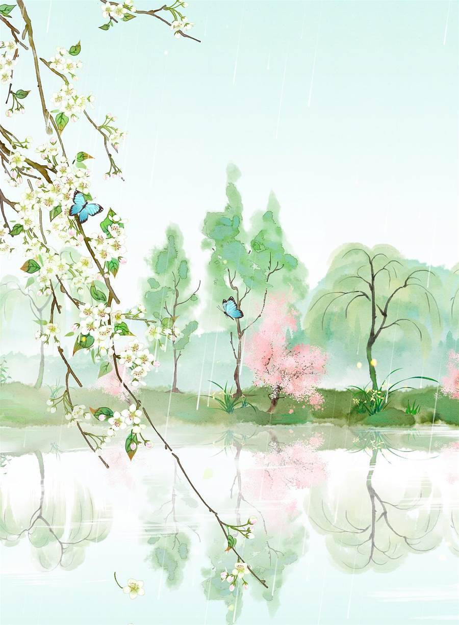 水澤中的蘭草越長越茂盛,漫延到水澤邊的小徑,柳枝也越來越濃密,把長長的水渠籠罩。
