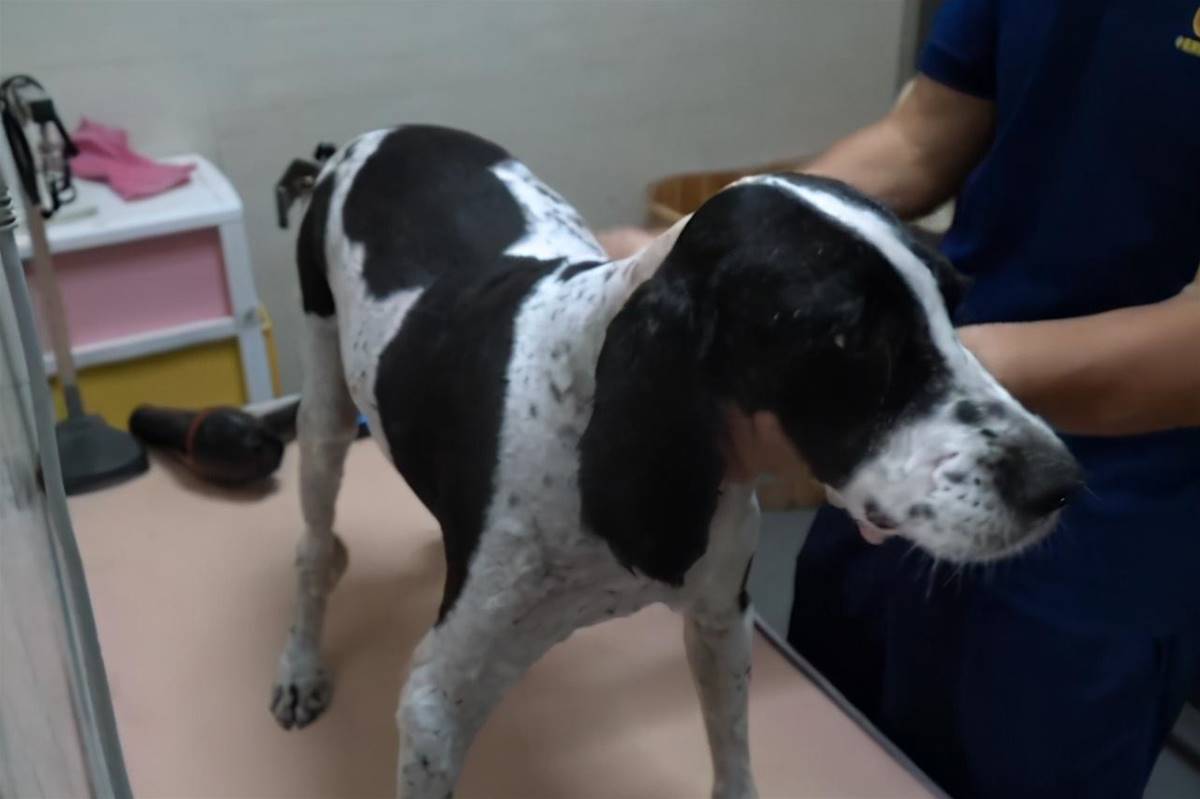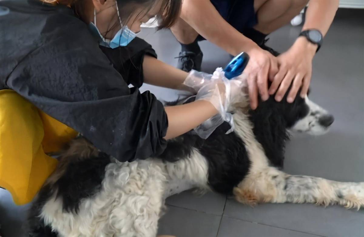 宠物店前台看到狗狗时,狗狗还在门外,前台习惯性想出门迎接狗狗,但她刚起身就愣住了,因为领狗狗来的男子一直在鼓励狗狗,而狗狗则想喝醉了酒一样,虽然能走,但走得颤颤巍巍,似乎随便来一阵风就能将它吹倒一般。