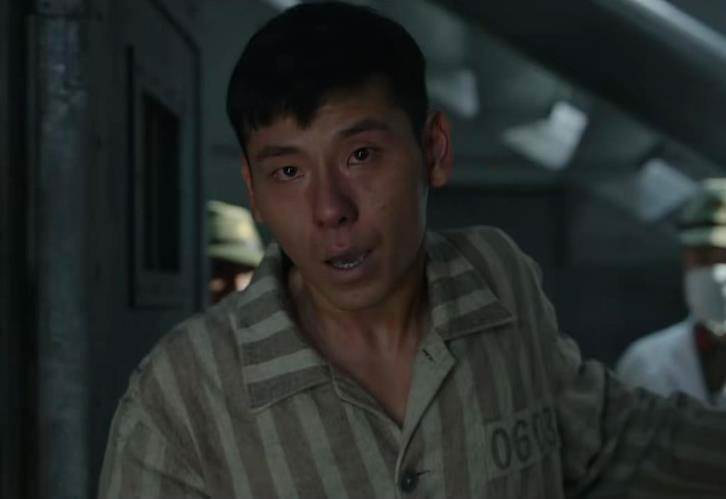 身穿監獄服,手捂著胸口,整個人像是在承受著莫大的痛苦,進門看著對面的人,眼睛通紅似有淚光閃爍,張著嘴想要說什麼,畫面卻戛然而止。僅一個鏡頭,就能看出這個角色,不簡單。