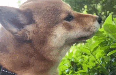 路過一片草叢時,狗狗突然停了下來,對著草叢一通猛嗅,還舔了幾下。