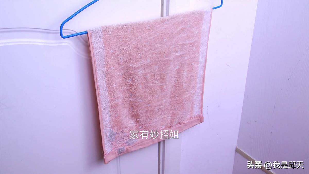 接下来,我们只需要将这个毛巾挂在衣架上面,然后再挂在房间的门把手上。毛巾散发出来的湿气,就能起到一个加湿的作用,可以帮助保持室内湿度,这样我们就算长时间待在空调房里也不会感觉那么干燥了。而且毛巾上散发的花露水和白醋的气味,还能有效的消除房间里的异味,使房间里飘散着淡淡的香味。
