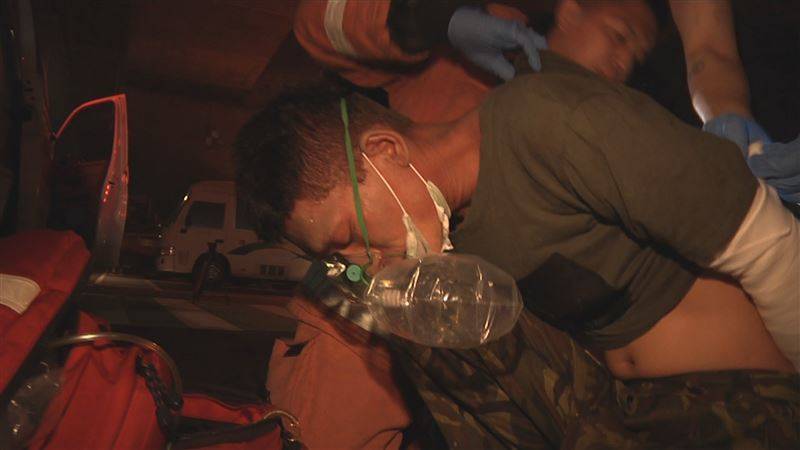 ▲陳彥翔在火場中也燒傷,當場被逮補。(圖/翻攝畫面)陳彥翔積欠債務經濟狀況不佳,常與家人發生口角,去年6月15日晚間9時40分,陳彥翔與父母發生爭吵後,開著妻子的車外出,購買4瓶分別裝著5公升汽油的寶特瓶返家,才剛到家又與父親爭吵,陳彥翔將汽油潑灑在輪胎行的工作區,嚇壞家中其他親屬。