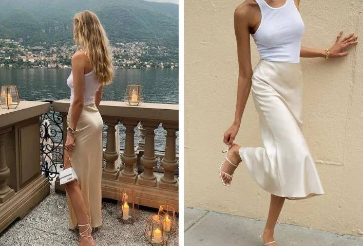 「月光裙」實際上是一件緞面連衣裙,以其光滑的質感和垂墜效果脫穎而出。這種裙子往往展現出流暢的輪廓,輕盈飄逸,讓人感覺仿佛置身于于月光手下。