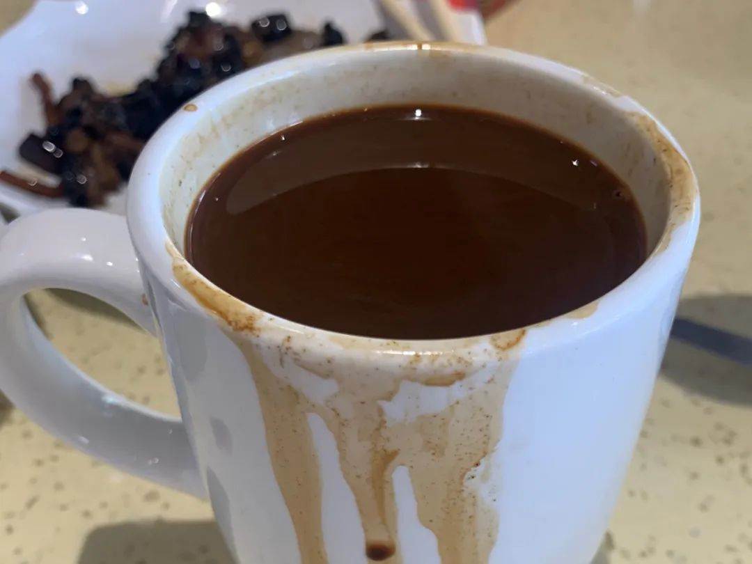 而南洋咖啡可没有烘焙炉这种高级货,主要使用大锅炒制,在炒的同时会加入黄油、糖、盐等调料让咖啡豆变得粘稠并且有焦香。咖啡豆会被炒到焦黑,并且因为糖和油的加入会粘成一坨,必须立刻磨成粉。非要拿阿拉比卡豆的烘焙程度类比的话,南洋咖啡应该算是“深深深烘焙”的程度了。