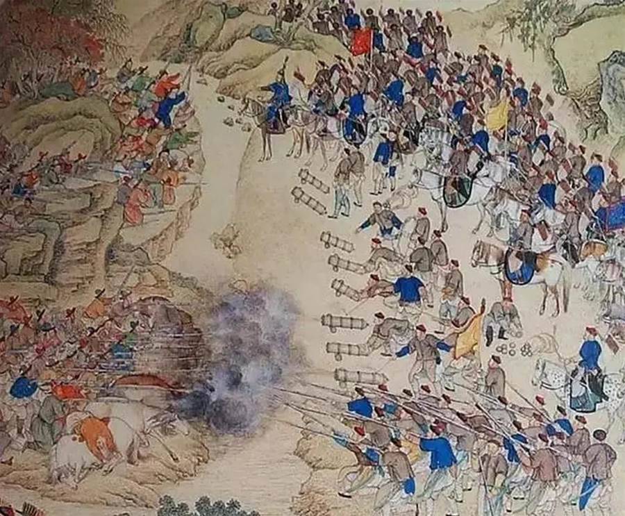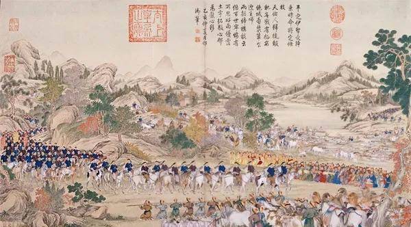 雖然日久承平,但康雍乾三代帝王繼承先輩好勇善戰的傳統,從康雍時期收台灣、降漠北、平青海、定西藏,到乾隆初期平定大小金川,帝國疆域急劇擴張,赫赫武功,威震東亞。
