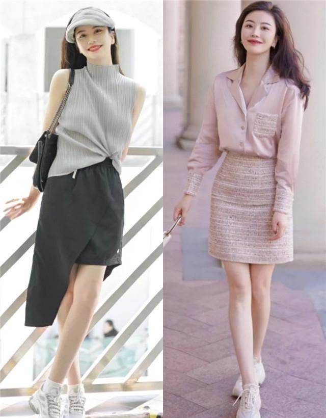如果想讓你的裙子與運動鞋的搭配更加有看點,那我們一定要多加注意細節的塑造。在這個春夏換季的時節,我們最需要注意的就是搭配的露膚度。