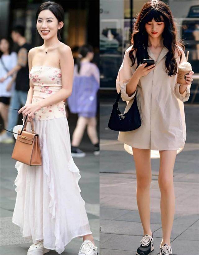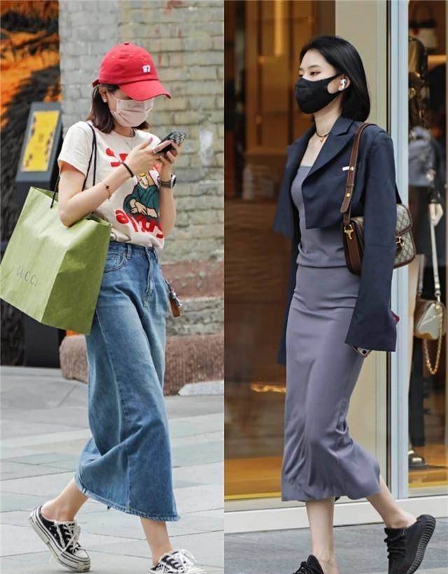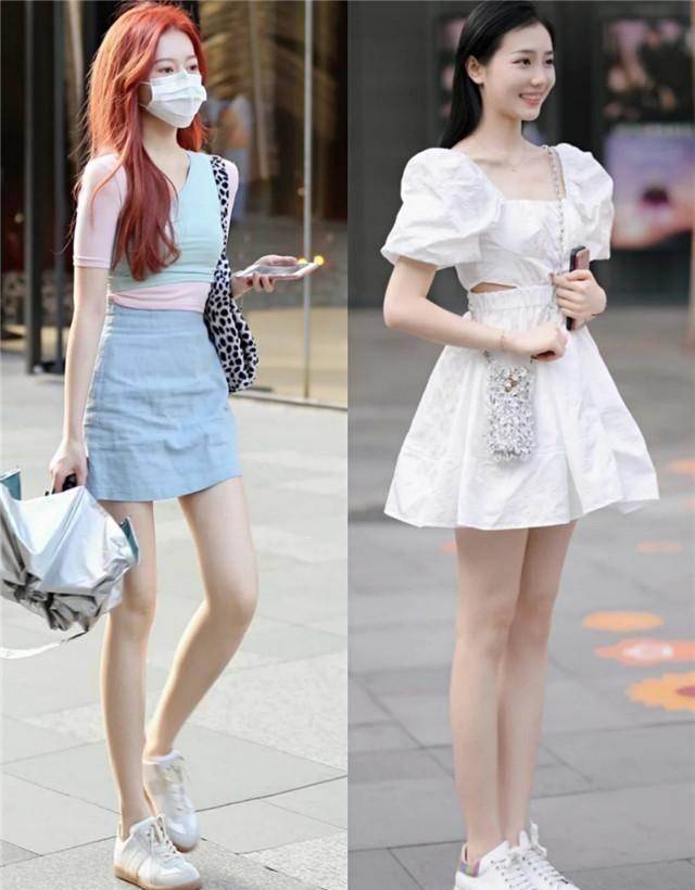 當然若是你更喜歡保守一些的穿法,那還可以入手「剛好到小腿肚中間」的迷笛裙搭配運動鞋。既能將部分小腿以及大腿遮蓋住,又能適當留出部分留白,在滿足透氣露膚需求的同時,又不會太過于扎眼,很適合腿粗的姐妹們嘗試。