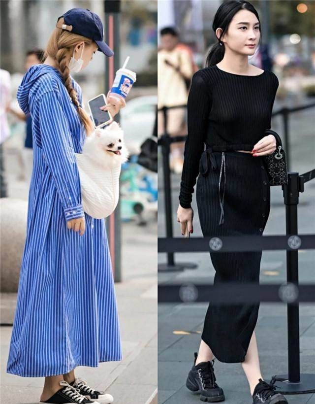 最佳的穿法,就是用加入了「開叉設計」的裙子搭配運動鞋。通過開叉設計加大腿部的露膚面積,不僅能降低運動鞋的枯燥沉悶,還能讓你的搭配更加性感,有女人味。