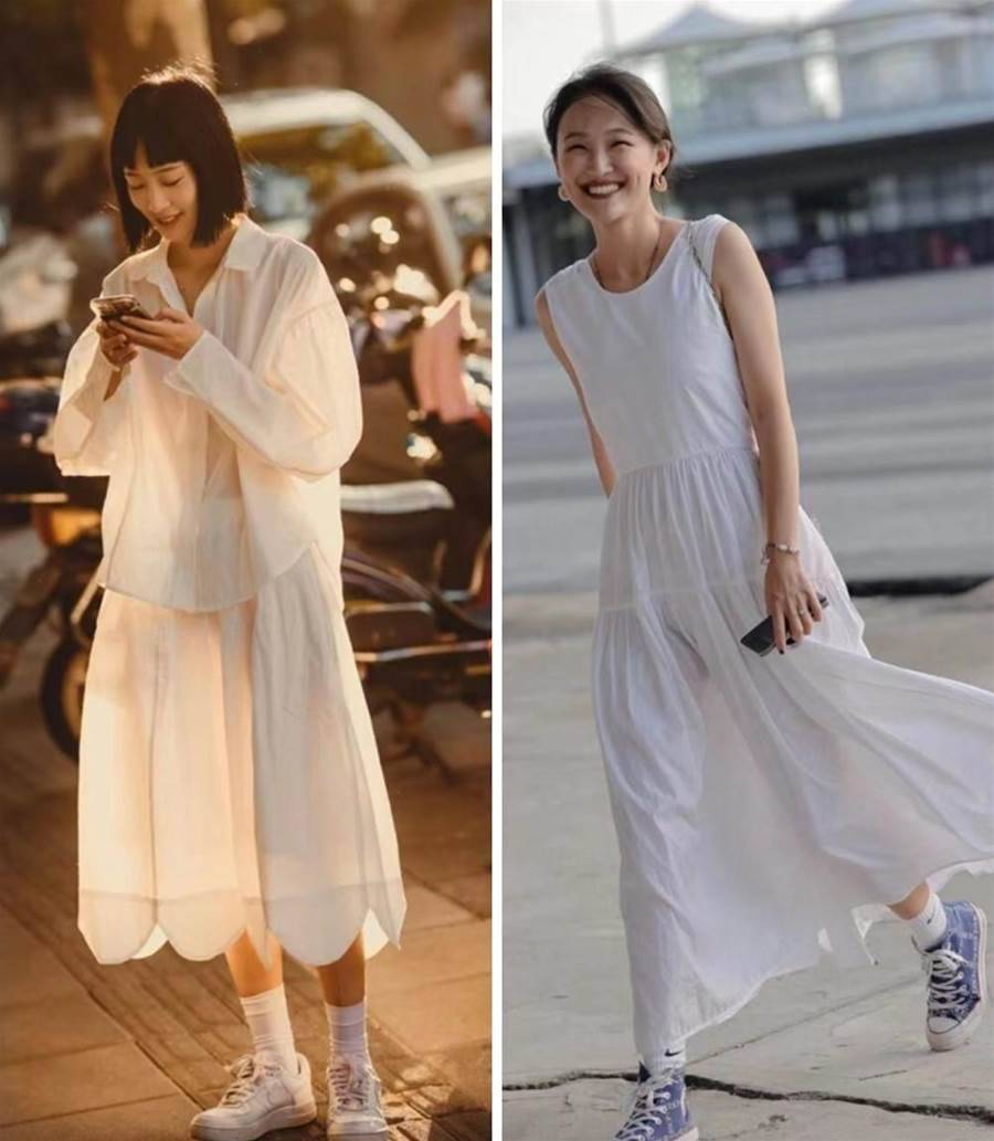 娃娃裙是乖乖女單品,白色風格感更甚,再搭配上同樣充滿青春朝氣的運動鞋,乖巧感和甜美感一下就得到的升華,不管你是35+的姐姐還是留著中性短發的酷女孩,都能一秒變乖乖女。