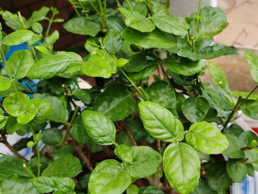 茉莉修剪比較狠,一般綠色枝條留2-3對葉子就行,不要留太長,太長的話復花就慢!剪完不要淋雨淋水,水澆盆里即可。