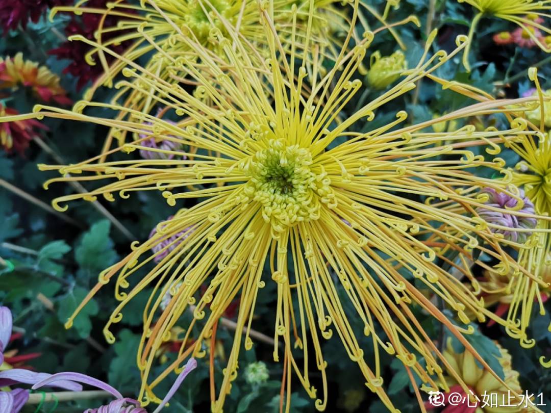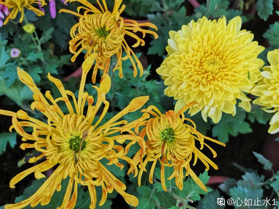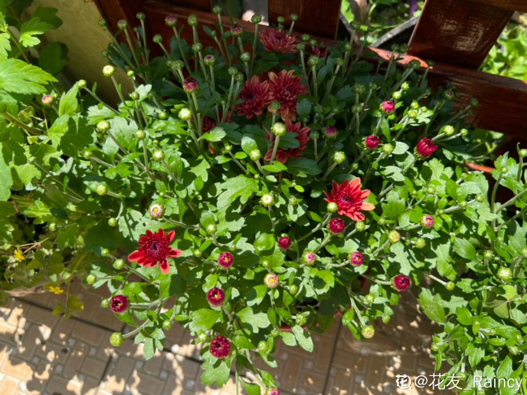 菊花有花苞后,比較喜水(平時比較耐旱),要按時給水,尤其是暴曬后,盆栽1-2天澆一次,土干及時澆。沿盆邊澆花盆里,盡量不要淋雨或淋水,以免花苞積水爛掉。