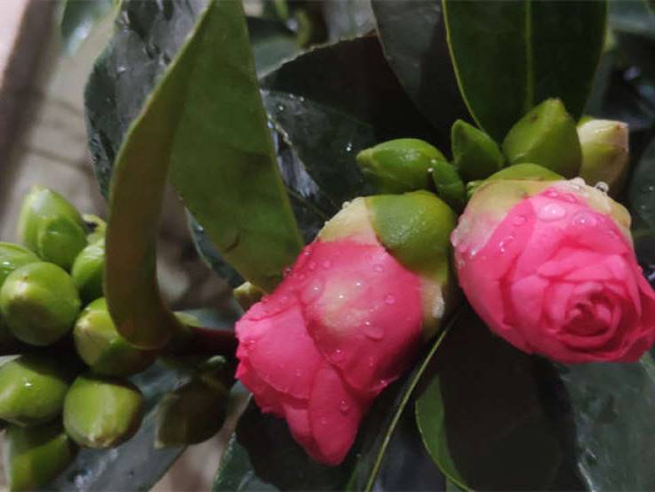 茶花夏天開始孕育花苞,如果你家還沒有花苞,要抓緊了,首先在早晚稍微增加一些光照,茶花是短日照植物,最好上午能曬1-3個小時,不要暴曬。