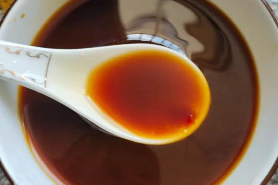 3、調料汁。碗中放入2勺生抽、2勺米醋、2勺白糖、1勺蠔油、1勺番茄醬,用勺子攪拌均勻備用。