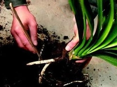 脫盆洗根以后,就對君子蘭的根系進行修剪,把病殘枝條,枯萎枝條,無活力枝條修剪掉,對于養護很多年的君子蘭,可以分株栽種,一盆變兩盆,快刀切除,然后用多菌靈或者草木灰對傷口進行消毒再栽種。