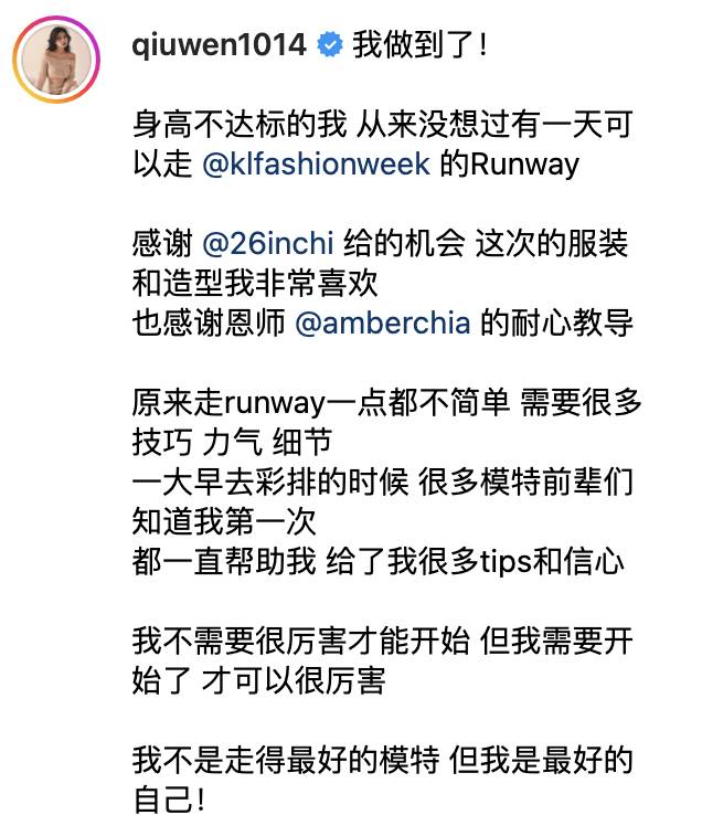 不少網紅都選擇出新歌,或者跨界拍戲拍電影。而大馬網紅秋雯也在 Instagram 上曬出了自己的第一次走秀!這是要加入模特界的節奏嗎?