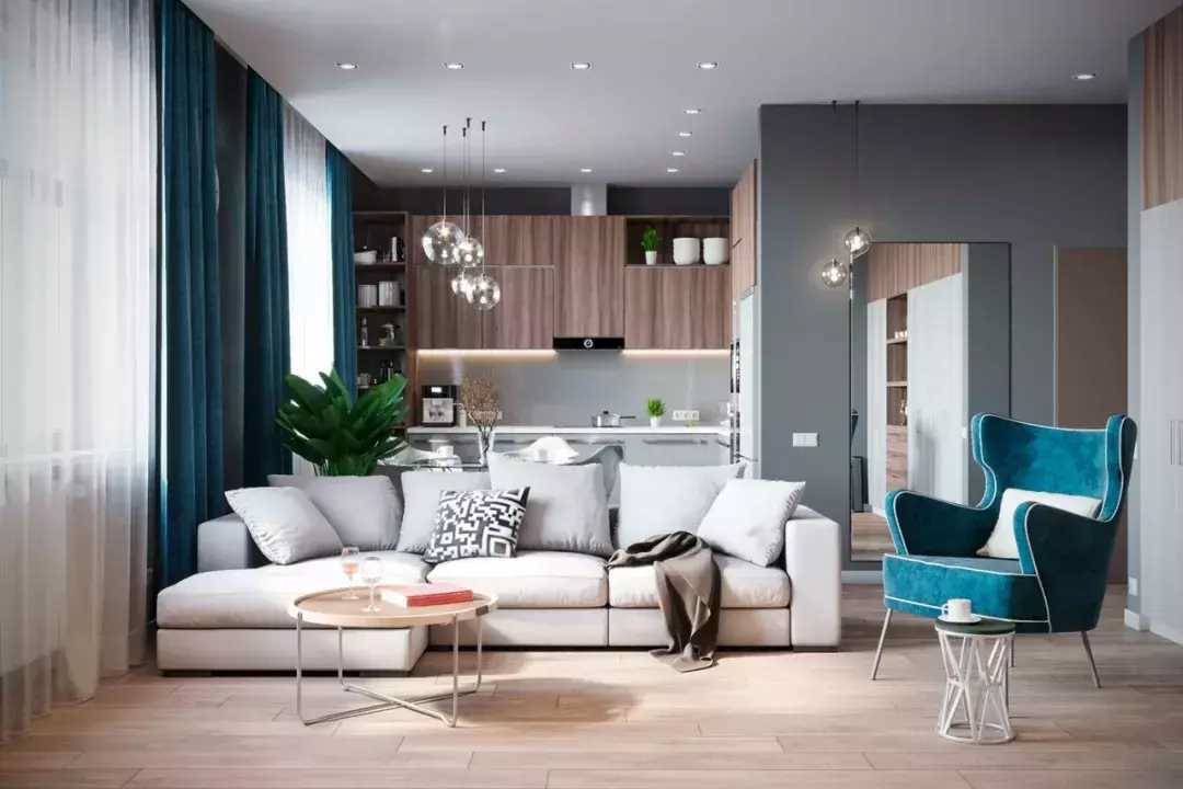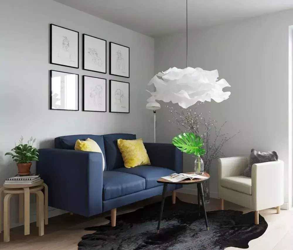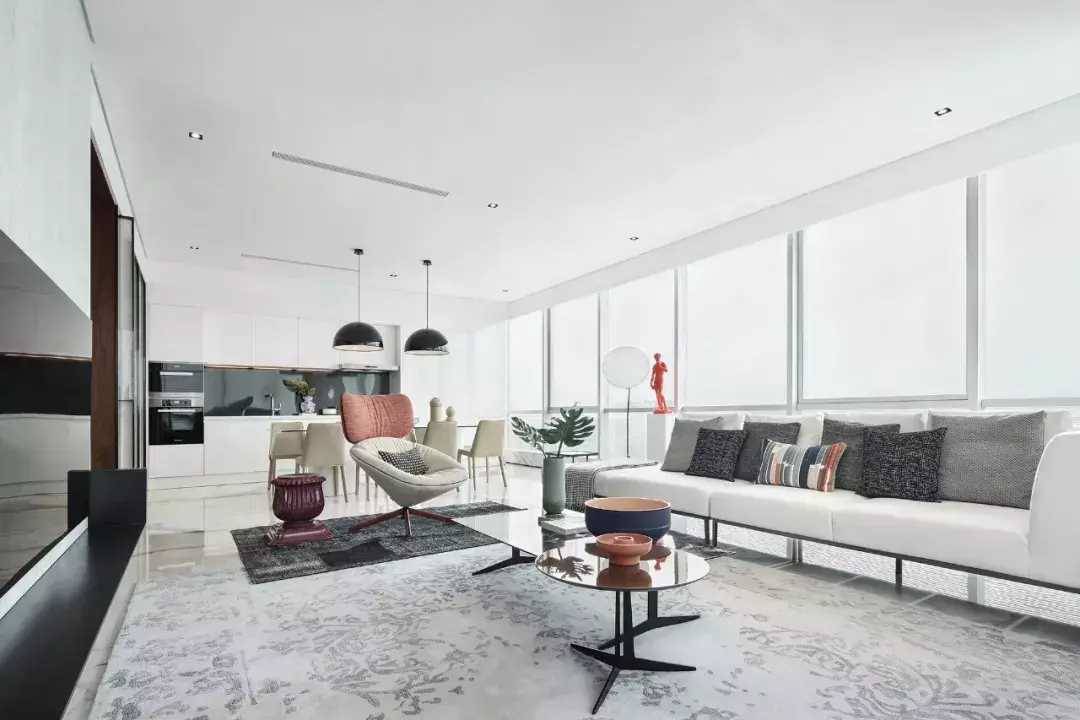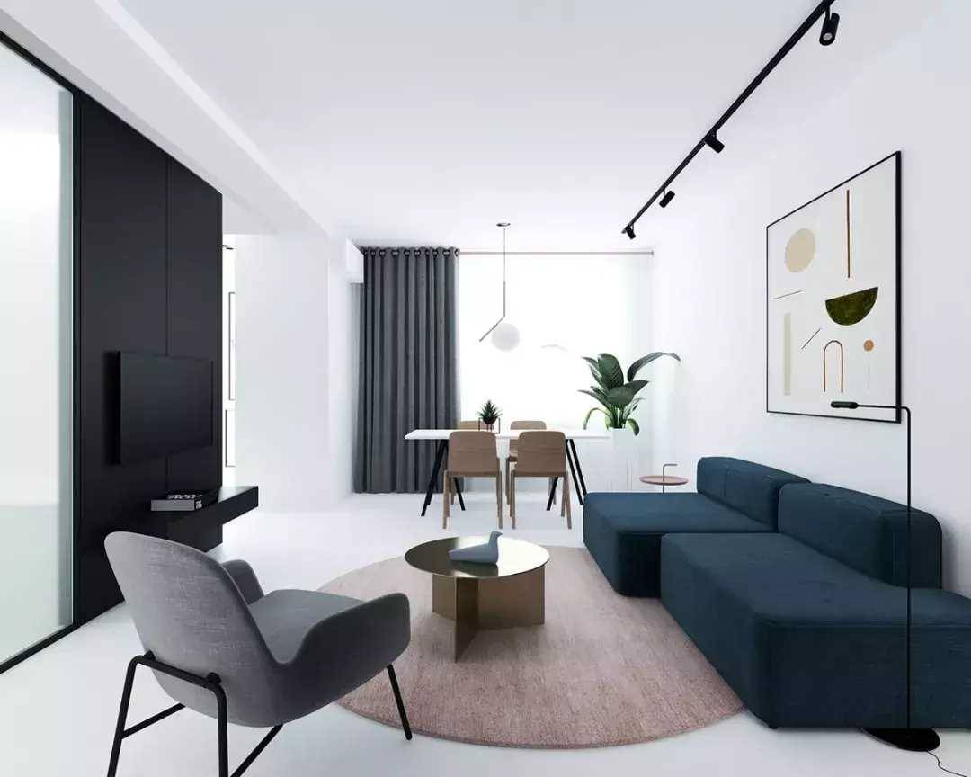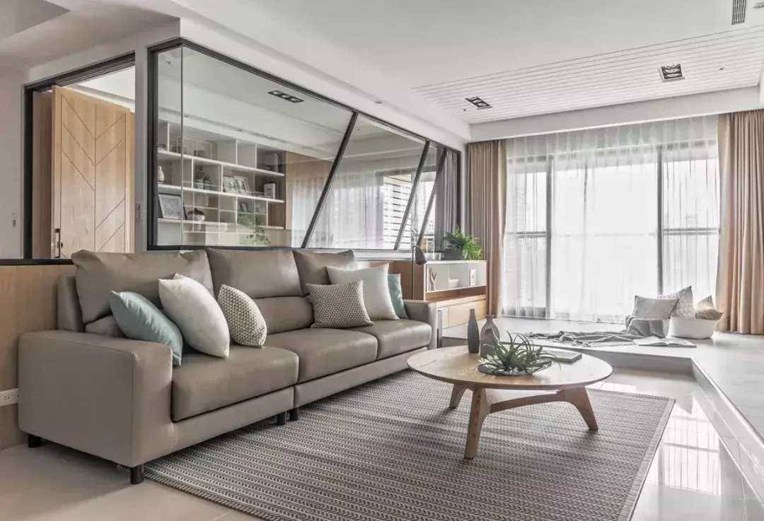 所以如果空間不大,建議使用「一字型」沙發+座椅的形式,空間看起來要通透、寬敞一點↓↓↓