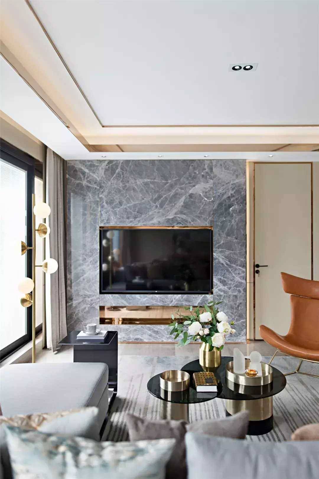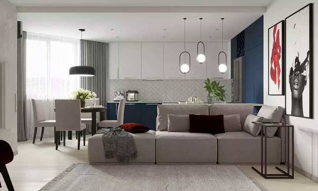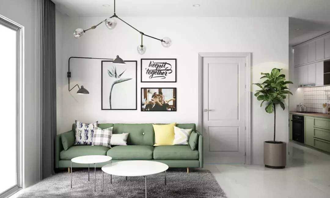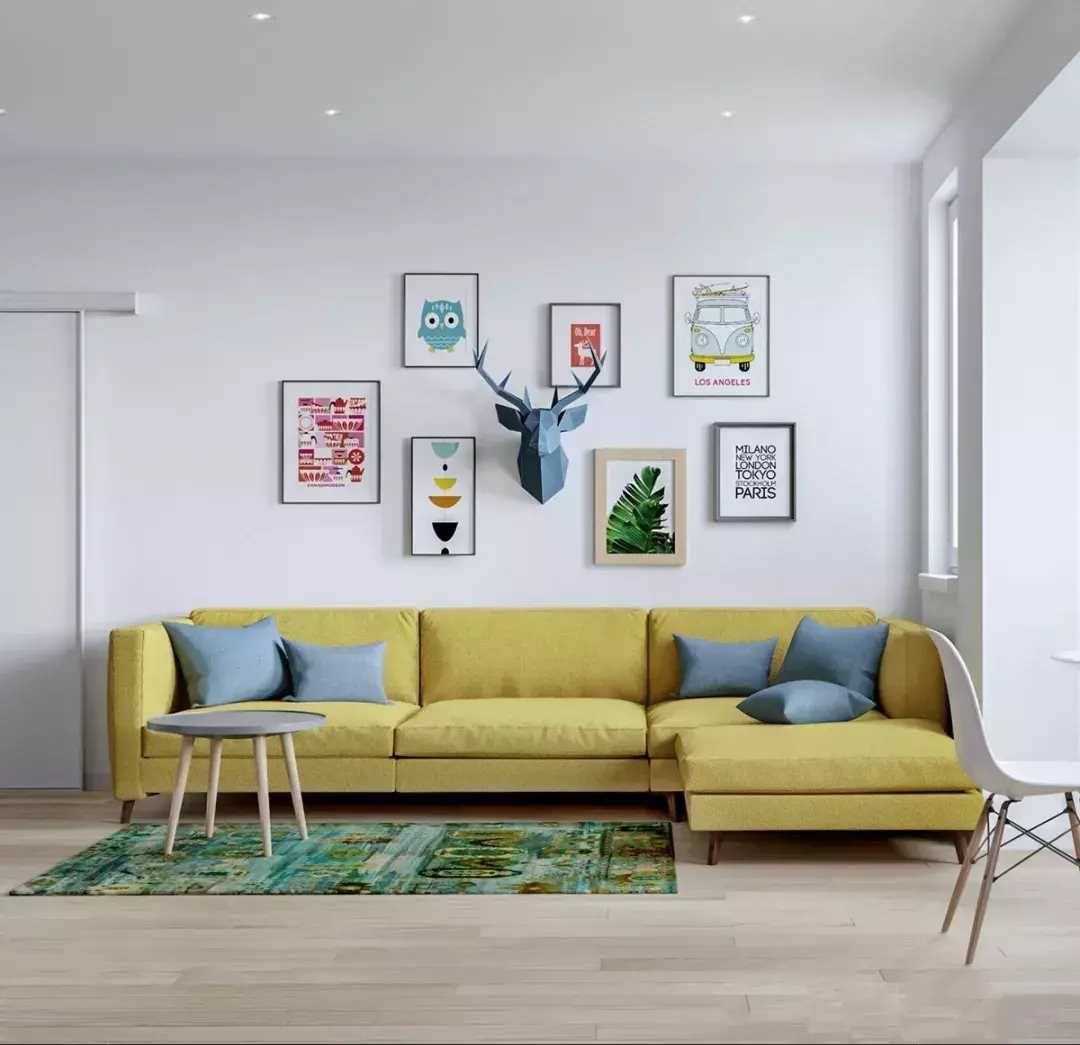 所以如果空間不大,建議使用「一字型」沙發+座椅的形式,空間看起來要通透、寬敞一點↓↓↓