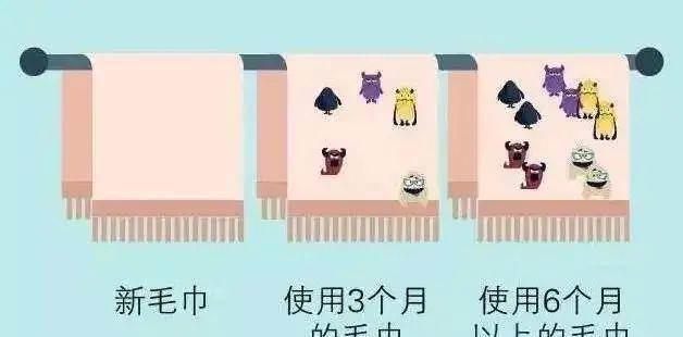 而我們長時間使用這樣受到重度污染的毛巾擦臉或擦身上將會導致皮膚更容易長痘患病,建議大家毛巾最好3個月一換。