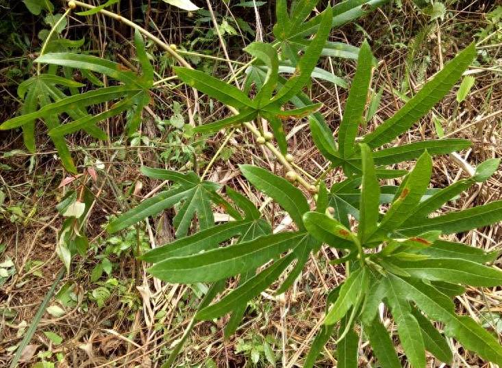五指牛奶是我國特有的植物品種,它隸屬于桑科植物的范疇,具有喜暖畏寒和耐光怕蔭的特點,主要分布在廣東省的境內,包括龍門縣,東源縣,以及萬綠湖一帶。這種植物對生長環境的要求非常嚴格,不僅要溫暖濕潤,而且要遠離污染,大多生長在深山幽谷之中,或者是原始叢林之間。除了五指牛奶這個名字以外,它還有很多別稱和俗名,比如像三龍爪,粗葉榕,亞椏木等等。不過,民間流傳最廣的名字還是五爪金龍,關于這個名字的由來,當地還流傳著一個有趣的故事。