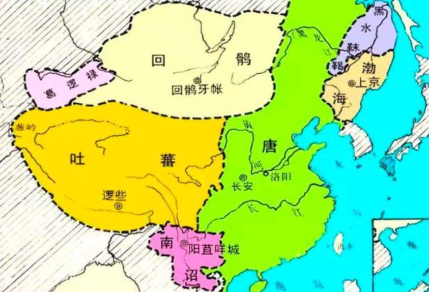 「安史之亂」后,唐兵東調,吐蕃也改由河隴地區為突破口攻唐,北庭、安西仍由唐朝邊將占領。