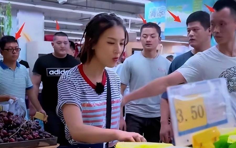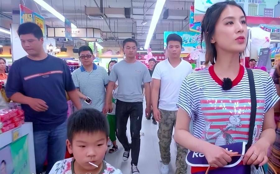在帶著兒子楊安迪參加綜藝,出門逛市場買菜的時候,也是帶了整整五個保鏢。