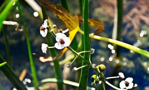 澤瀉:澤瀉屬澤瀉科澤瀉屬多年生水生或沼生草本。全株有毒,地下塊莖毒性較大。澤瀉養護簡單,和銅錢草差不多,葉色碧綠,株型緊湊。白色的花黃色的蕊,花較大,花期較長,可從4月開到9月、花卉極具觀賞性。種上一盆在陽台,也是別具一格的美。個人覺得種一盆澤瀉比種一盆銅錢草要美觀一些。只是它的名字少了一些「銅臭味」