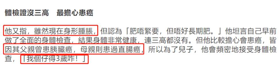 早前,他出席活动时被发现胖了很多,记者担心他有三高,于是主动询问他。他表示否认自己有三高,还说身体很健康。