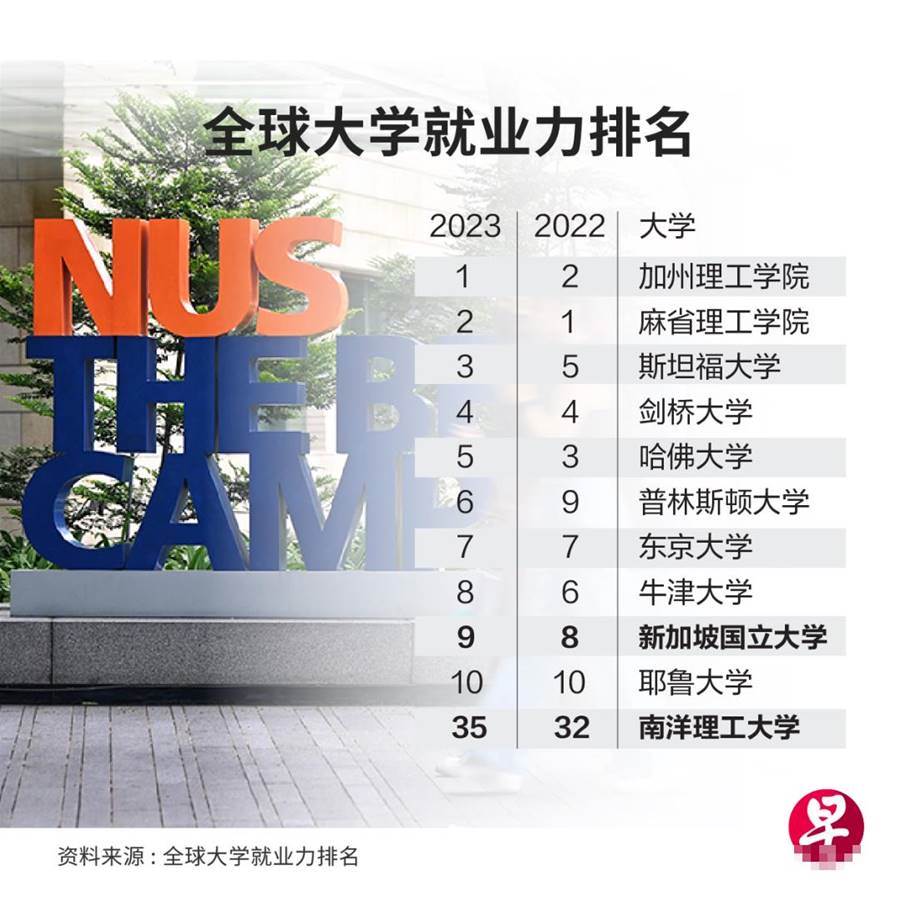 在最新的全球大学就业力排名中,新加坡国立大学名列全球第九位,南洋理工大学排名第35。