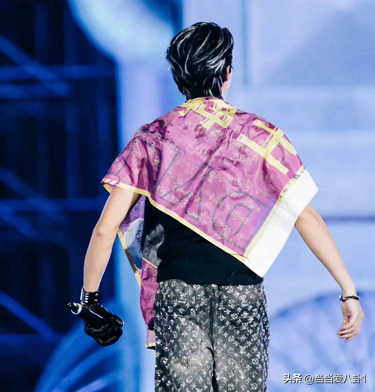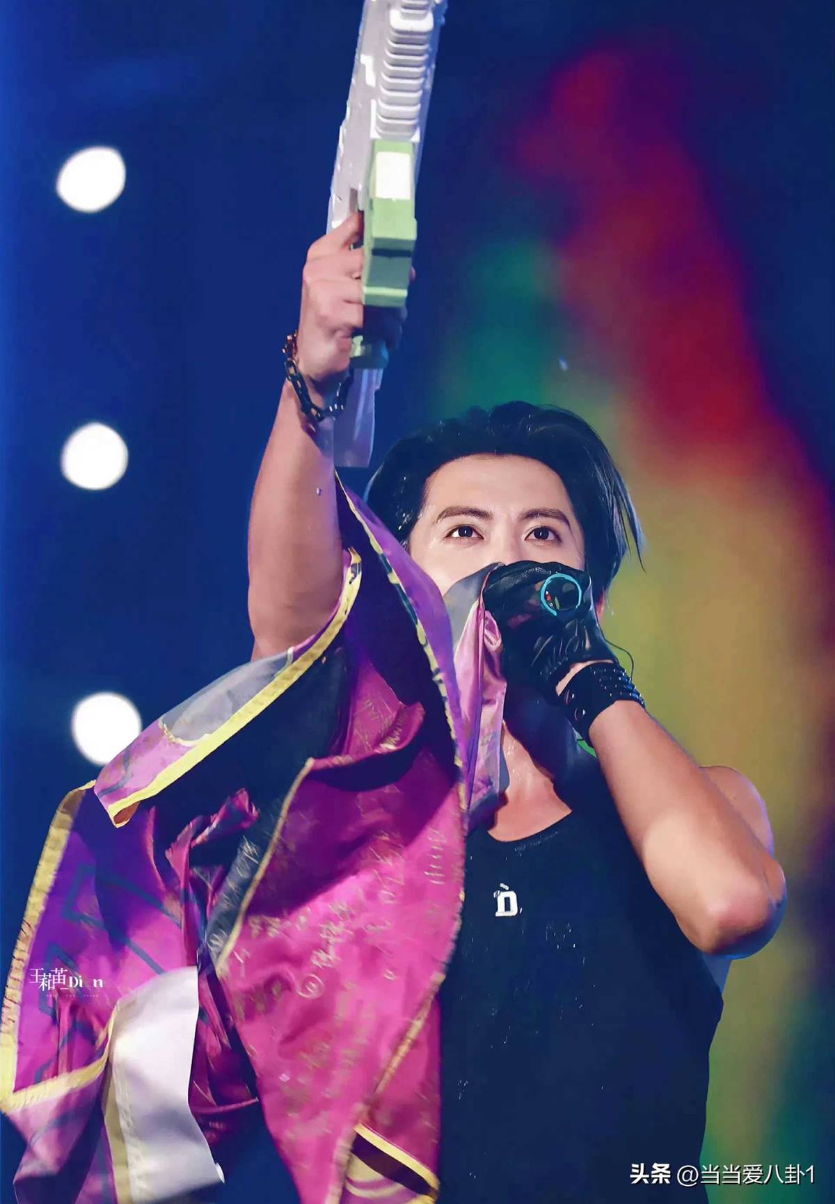 在最近的大蘑菇音樂節上。王鶴棣身穿黑色T恤,外面披上了一面由粉絲簽名的旗子。這面旗子五顏六色,上面密密麻麻地簽滿了粉絲的名字和祝福。這個細節展示了王鶴棣對粉絲的深深感激和尊重。那一刻他的粉絲應該會熱淚盈眶吧,這是愛的盔甲。