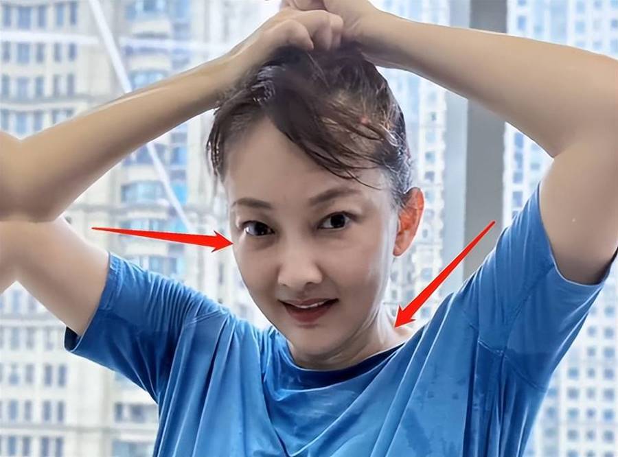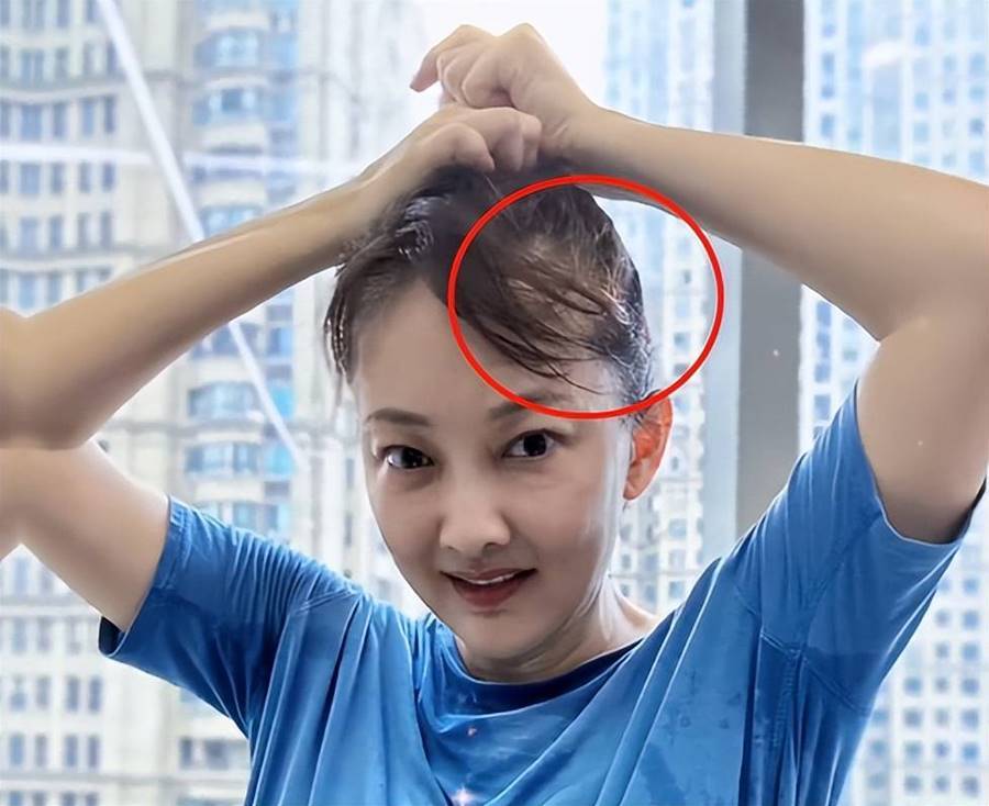 值得一提的是,照片中的牛莉雙手攬住自己的頭髮,這個動作也讓她稀少的髮量一覽無遺,牛莉的頭髮不但稀少,發質看起來也不是很好,頭皮處的頭髮有些枯黃。