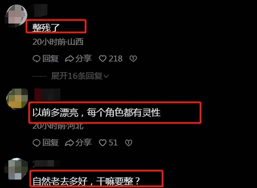 牛莉的這條動態發出后,得到了許多網友的關注,有不少人在評論區發表感嘆,表示牛莉外貌與年輕時變化真的很大,沒有了之前的靈性,稱她是整容整殘了。