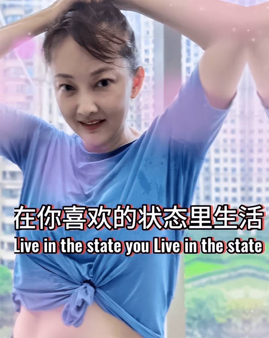 身上全都被汗液浸濕,看樣子應該是剛剛健身完,不得不說,雖然牛莉已經51歲了,但是她這樣積極對待生活的習慣值得許多人學習。