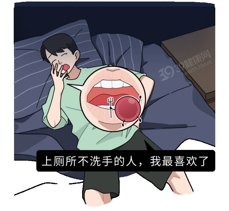 吃了不干凈糞便污染的食物,可能致使食用者患病。同時上完廁所不洗手,也會讓幽門螺桿菌有可趁之機。
