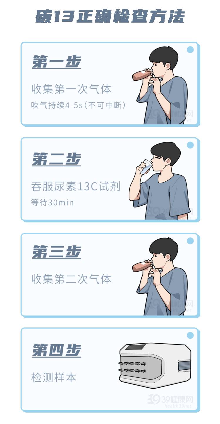一般采用碳13和碳14尿素呼氣試驗來檢測,具體如下: