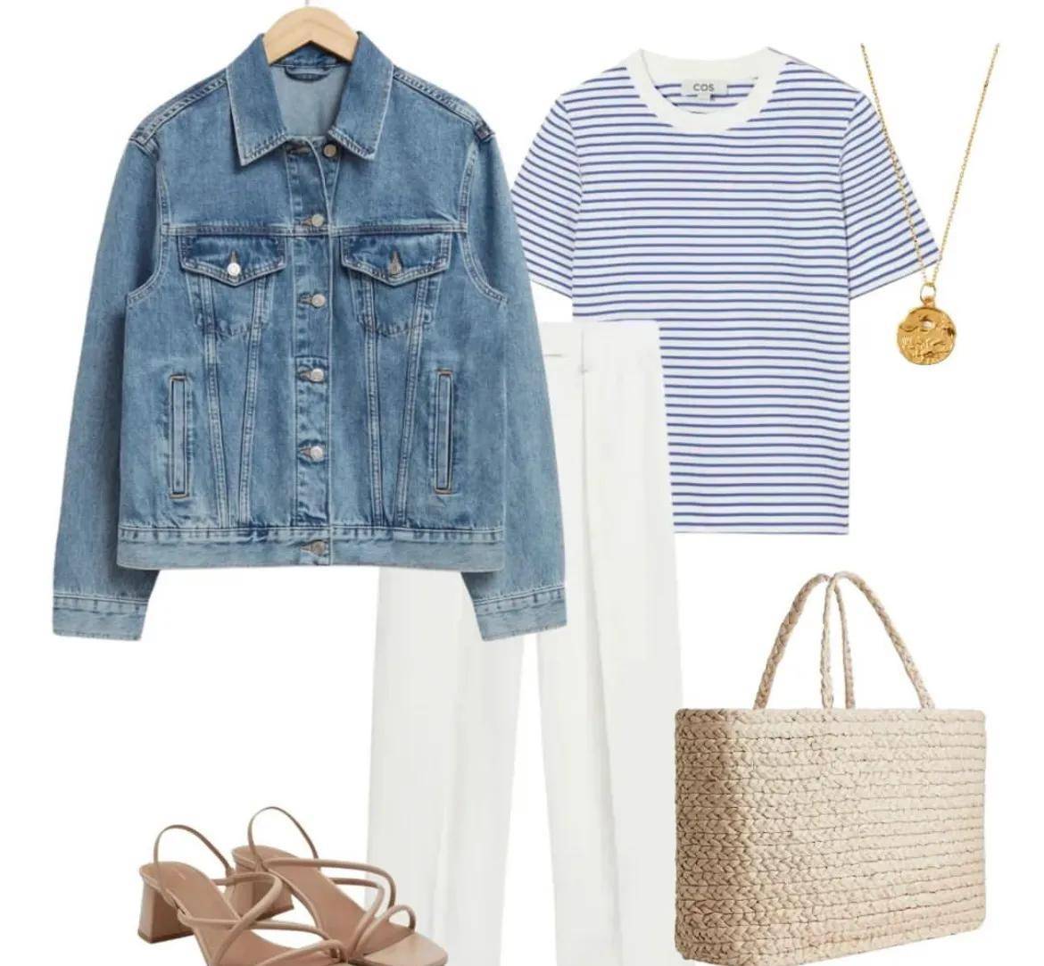 海魂風格的藍白T恤,很有法國南部的味道。搭配牛仔外套,讓一些嚴肅的白褲顯得青春減齡,充滿活力。
