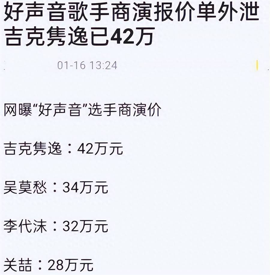 她參加節目是2012年,當時她商演的報價已經高達42萬。