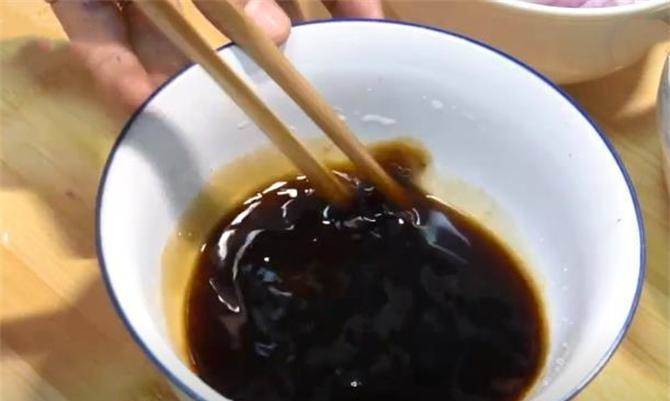3.食材都切好了,現在開始調制老醋花生獨特的料汁,準備一個碗,放入三勺白糖,適量醋,少許生抽,再多放點素蠔油,攪拌均勻。