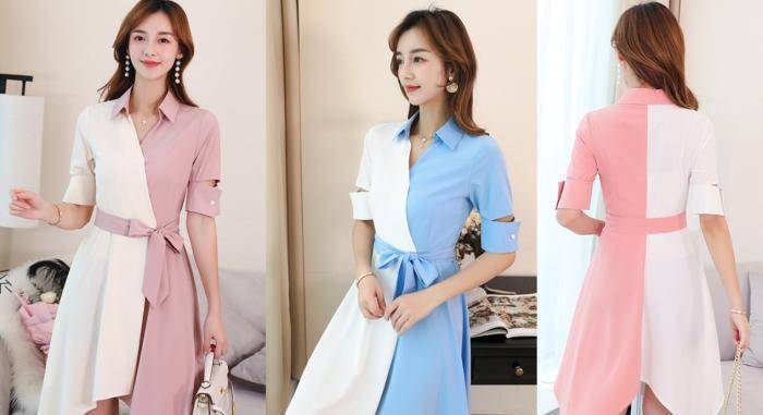 韓版優雅拼接連衣裙。流線型設計輔以纖細的分界線細節,廓形十分纖細。寬松自由的剪裁可以容納任何數量,修身塑形的效果是眾所周知的。