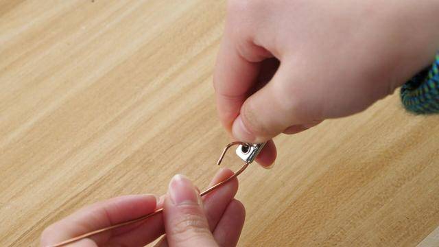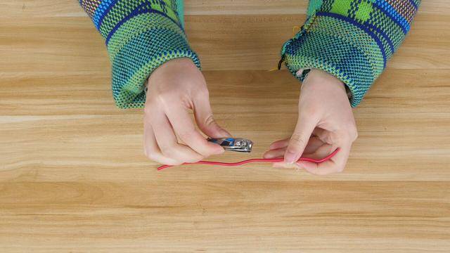 如果我們家中沒有鉗子,就可以用指甲刀來代替,我們把鐵絲插進指甲刀尾部的小孔里,輕輕彎折鐵絲,您瞧,可以輕松的把鐵絲折成任何形狀。