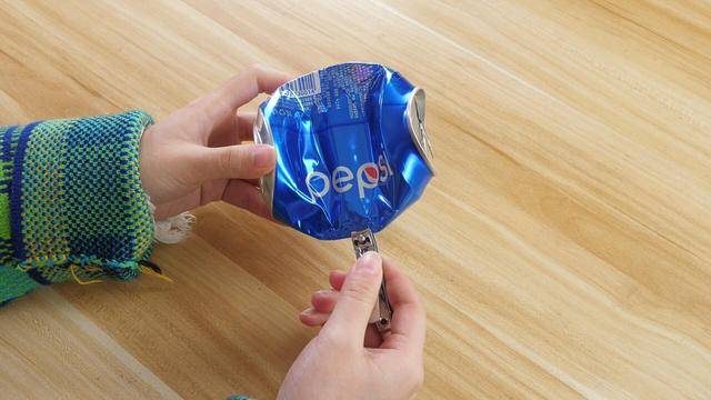 其實方法非常簡單,我們首先準備一個易拉罐,然后把它按扁,壓平,然后我們用指甲剪,剪側面壓平的地方,這是因為我們在用指甲刀去剪易拉罐的時候,我們指甲刀刃反復和易拉罐進行摩擦,同時增大的摩擦力,能很快的將刀刃打磨鋒利。我們家中的剪刀也可以使用這種方法進行打磨。