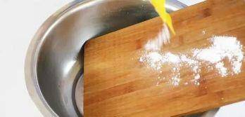 1、殺菌消毒。首先把案板沖洗一下弄濕,然后撒上一層食鹽、小蘇打(食鹽可以殺菌消毒,小蘇打有強力的去污作用),再用手把它涂抹均勻
